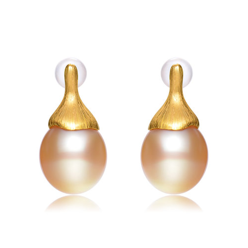 zhuella/珠艾乐 10-11mm水滴南洋金珠银杏叶耳环