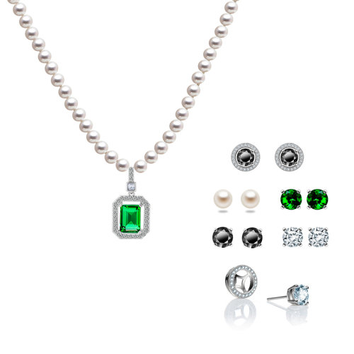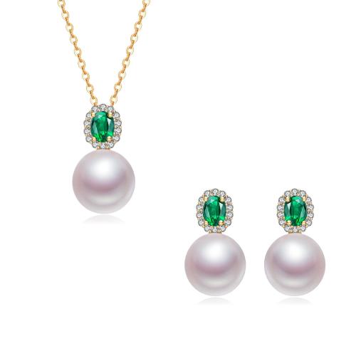 zhuella/珠艾乐 祖母绿锆石吊坠 可脱卸 淡水珍珠项链 天然淡水珍珠太阳款耳钉