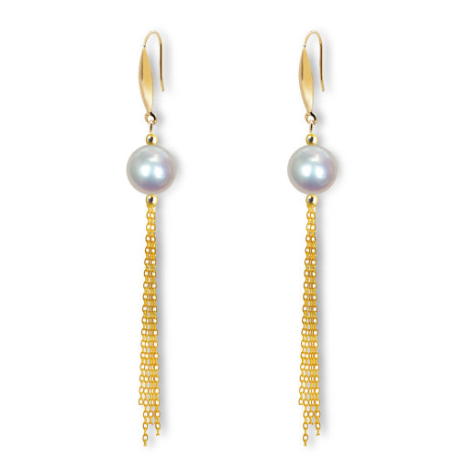 zhuella/珠艾乐 长流苏耳环耳钉耳饰 日本Akoya海水珠 简约时尚