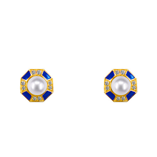 zhuella/珠艾乐 袖扣系列 日本akoya海水珠18k金钻石袖扣造型耳环耳钉耳饰