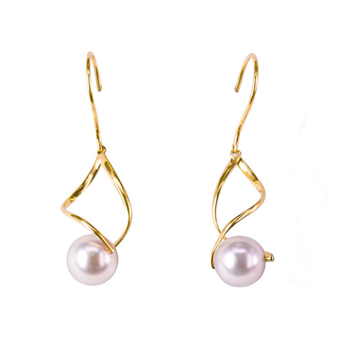zhuella/珠艾乐 DNA爱情基因系列 日本akoya海水珠18k金DNA造型耳环