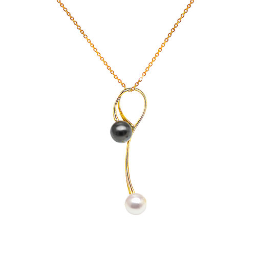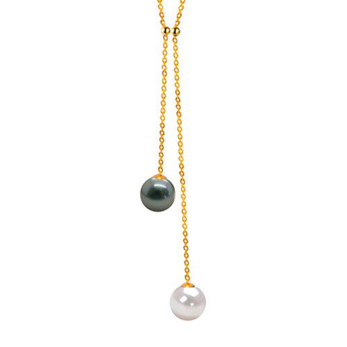 zhuella/珠艾乐 可调节 南洋白珠 大溪地黑珍珠 海水珍珠吊坠项链 送妈妈长辈