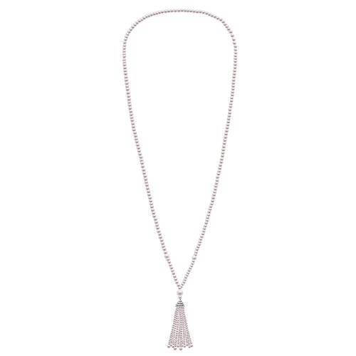 zhuella/珠艾乐 日本akoya海水珠 18K金钻石吊坠头 流苏毛衣链项链吊坠
