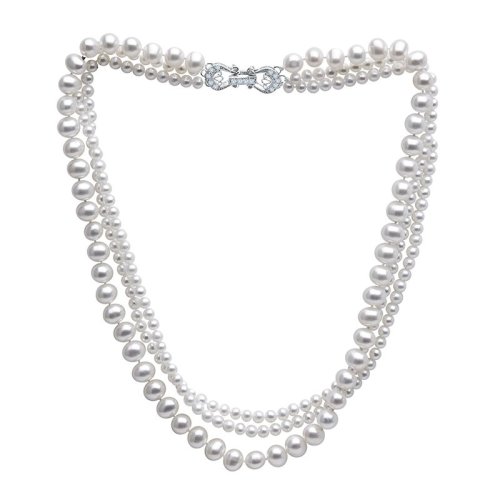 zhuella/珠艾乐 经典三圈 天然淡水珍珠项链吊坠 银镀白金镶嵌锆石扣