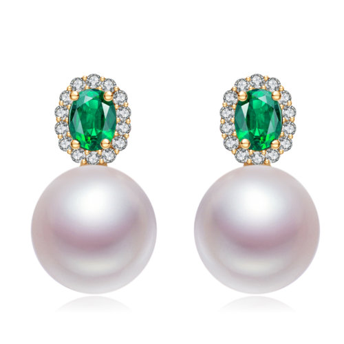 zhuella/珠艾乐 18k金合成祖母绿日本海水珍珠耳环