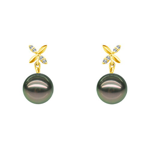 zhuella/珠艾乐 四叶草系列大溪地黑海水珍珠钻石耳环耳钉耳饰送妈妈长辈