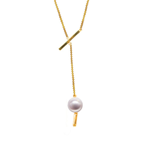 zhuella/珠艾乐 18k金日本珠线条项链吊坠 日本akoya海水珠