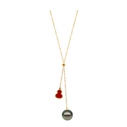 zhuella/珠艾乐 大溪地黑珍珠18k金玛瑙葫芦项链