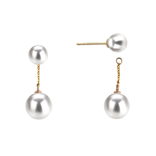 zhuella/珠艾乐 日本akoya海水珠 渐变平衡18k金耳环耳钉耳饰