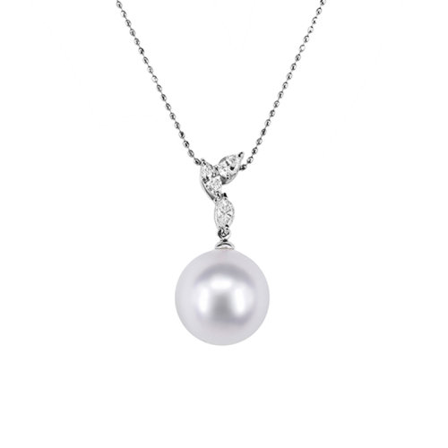 zhuella/珠艾乐 南洋白珠18k钻石吊坠项链