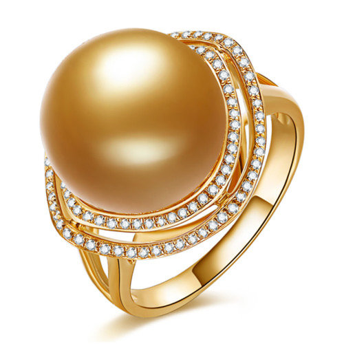 SANDYRILLA/仙蒂瑞拉视觉焦点12-13mm南洋金珍珠18K金钻石戒指-奢美黄色黄色