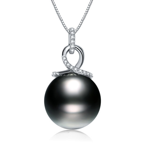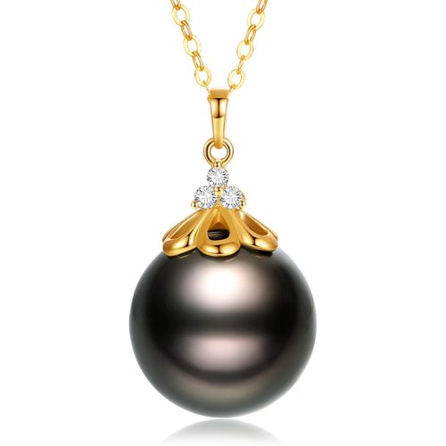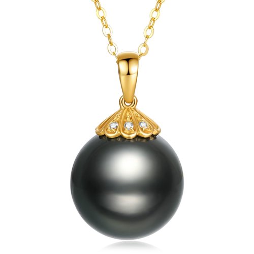 SANDYRILLA/仙蒂瑞拉 12-13mm大溪地黑珍珠18K金镶钻吊坠-情结