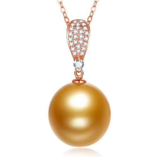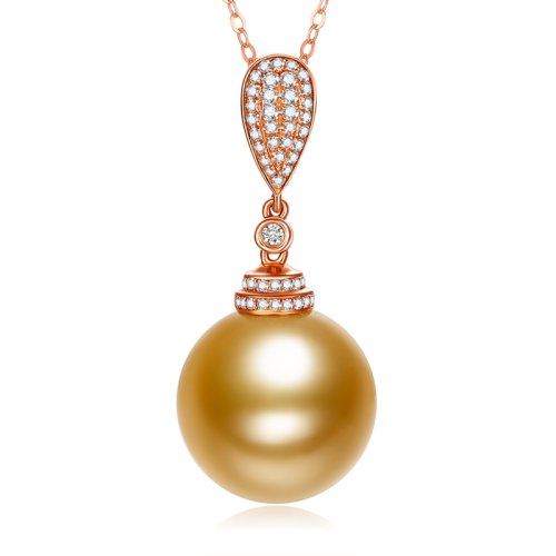 【新款】SANDYRILLA/仙蒂瑞拉 浓金色12-13mm海水珍珠吊坠18K金钻石吊坠