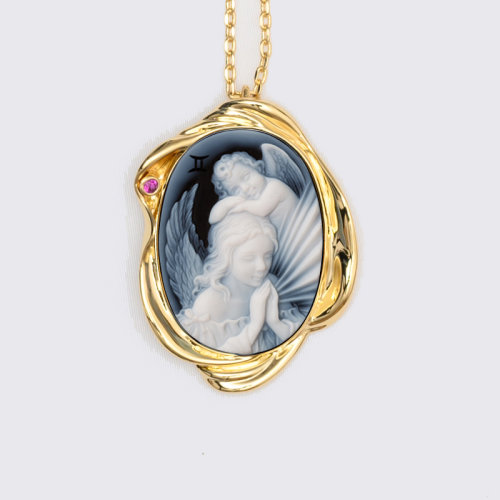 吊坠【2021新款星座】 shiyu/十玉艺术珠宝 双子座 [全球限量20枚] 一体双色缟玛瑙 黄道十二宫 十玉