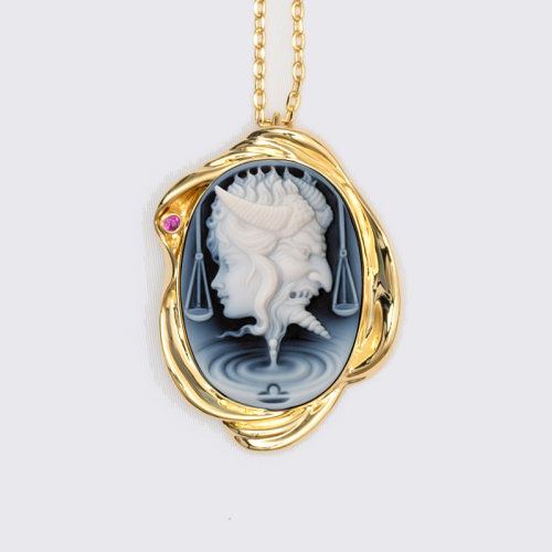 吊坠【2021新款星座】 shiyu/十玉艺术珠宝 天秤座 [全球限量20枚] 一体双色缟玛瑙 黄道十二宫 十玉