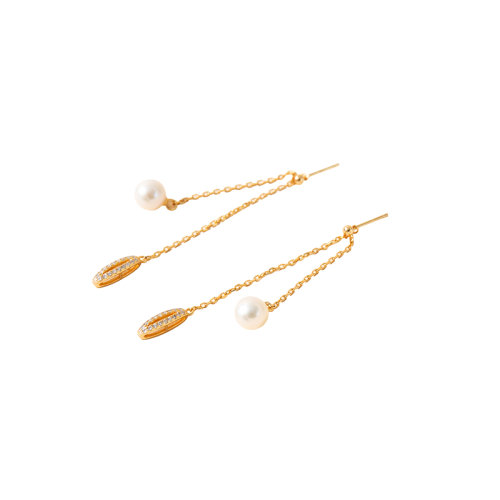 GeleiStory/GeleiStory 925银镀金镶锆石淡水珍珠2021新款经典气质轻奢质感耳钉