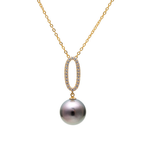 GeleiStory/GeleiStory正圆大溪地黑珍珠吊坠G14k金海水珍珠项链女礼物