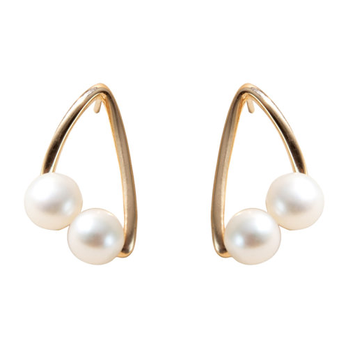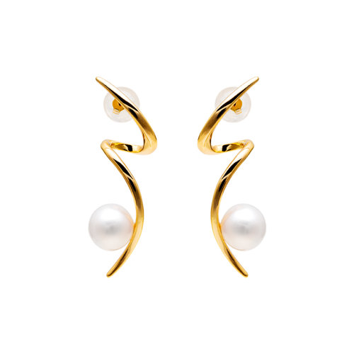 GeleiStory/GeleiStory女士淡水珍珠耳钉个性耳环简约几何耳饰925银镀金耳钉女士耳环
