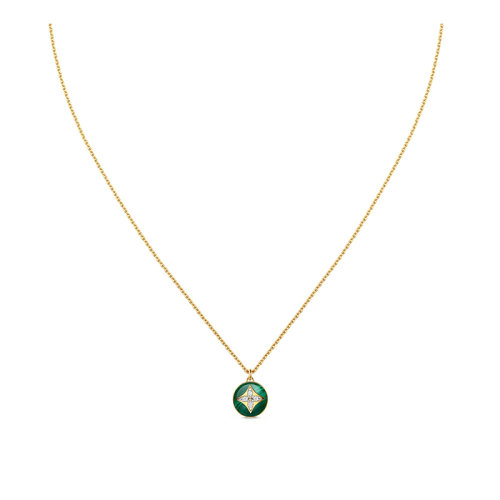 Louis Vuitton/路易威登 经典款B BLOSSOM系列 18k金黄金/白金孔雀石镶嵌4颗钻石吊饰项链Q93792