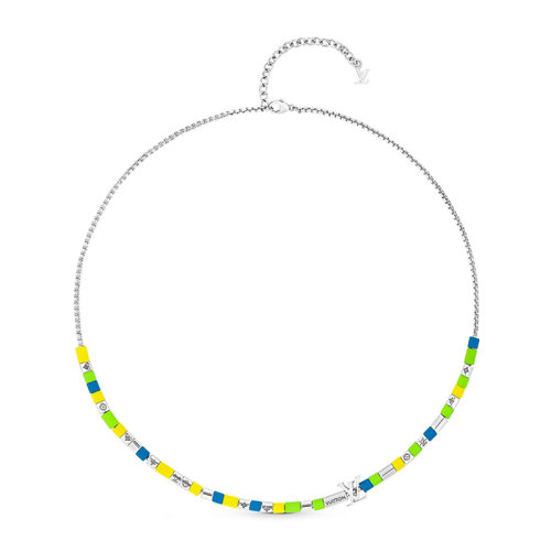 Louis Vuitton/路易威登 22春夏新款LV SUNRISE系列 黄绿蓝银哑光树脂配金属串珠银色徽标造型吊饰项链M00651