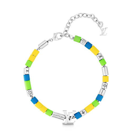 Louis Vuitton/路易威登 22春夏新款LV SUNRISE系列 黄绿蓝哑光树脂配银色金属串珠银色徽标造型吊饰手串手链M00653
