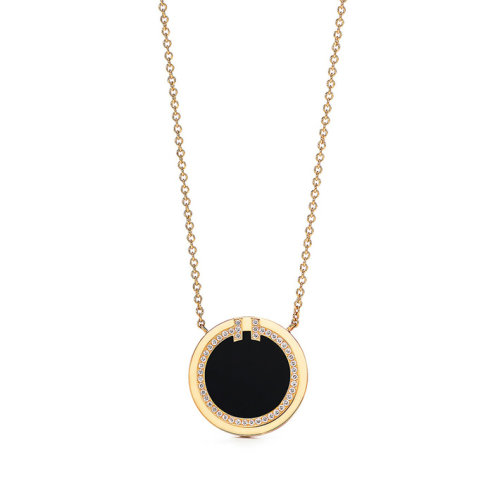 Tiffany & Co./蒂芙尼 T系列女士 18k金镶嵌黑玛瑙和钻石圆形吊坠项链 64027034