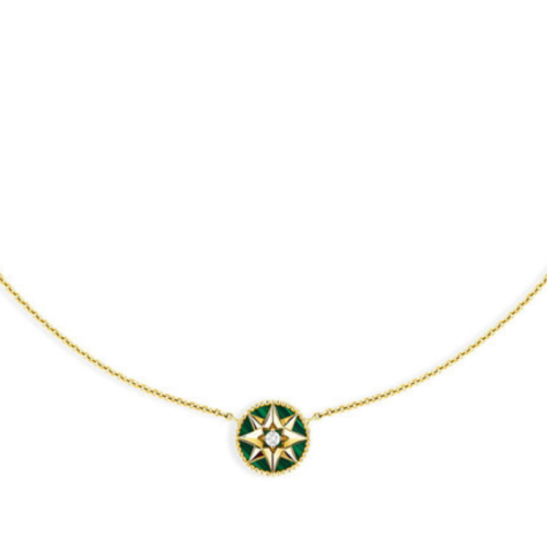 DIOR/迪奥 明星同款ROSE DES VENTS 八芒星镶嵌钻石孔雀石黄金项链 JRDV95051_0000