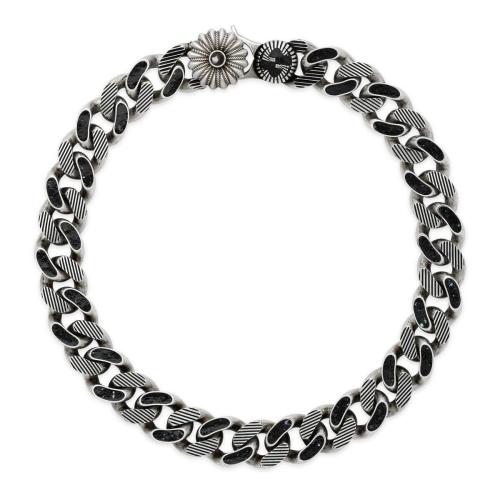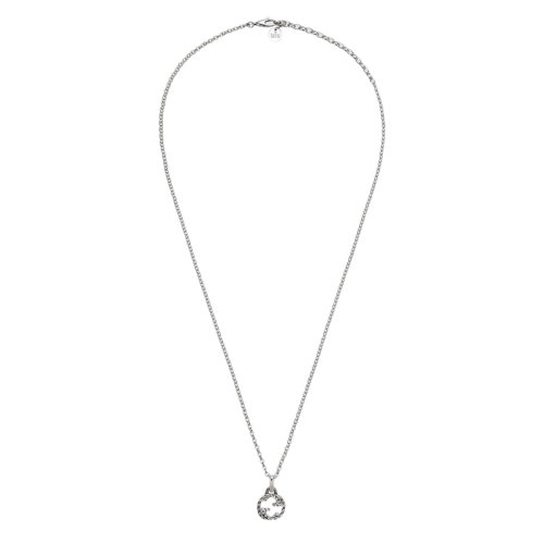 GUCCI/古驰 经典925银雕花图案纹理双G吊坠项链455535J84000811