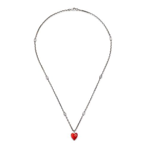 GUCCI古驰 22年秋冬 女士 互扣式双G珐琅爱心项链 645545 J89B4 1192