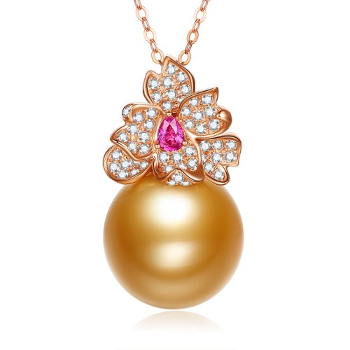 SANDYRILLA/仙蒂瑞拉 奢美质感14-15mm南洋海水金珍珠18K金钻石红宝吊坠