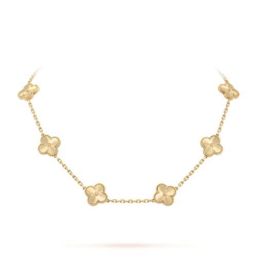 Van Cleef & Arpels/梵克雅宝 Vintage Alhambra经典系列 18K金黄金拉丝10花四叶草项链VCARP3JJ00