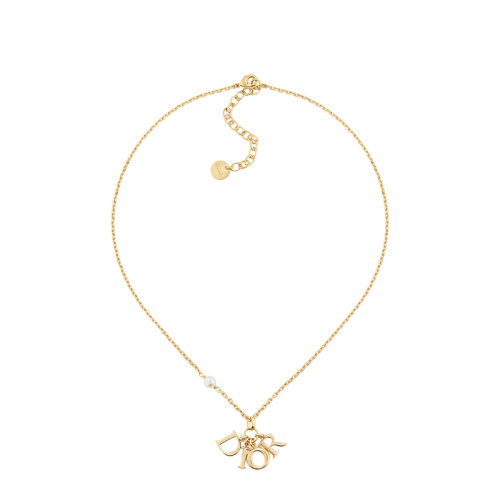 DIOR/迪奥 22春夏新款DIO(R)EVOLUTION系列 女士金色饰面金属白色树脂珠徽标吊坠项链N1680DVORS_D301