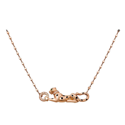 CARTIER/卡地亚 PANTHèRE系列 玫瑰金黑漆镶嵌石榴石钻石小猎豹吊坠项链B7224539