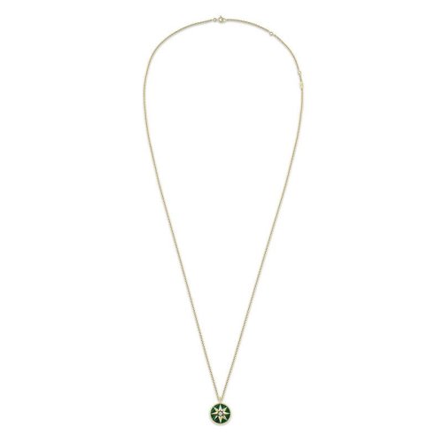DIOR/迪奥 明星同款ROSE DES VENTS 八芒星镶嵌钻石孔雀石饰牌黄金项链