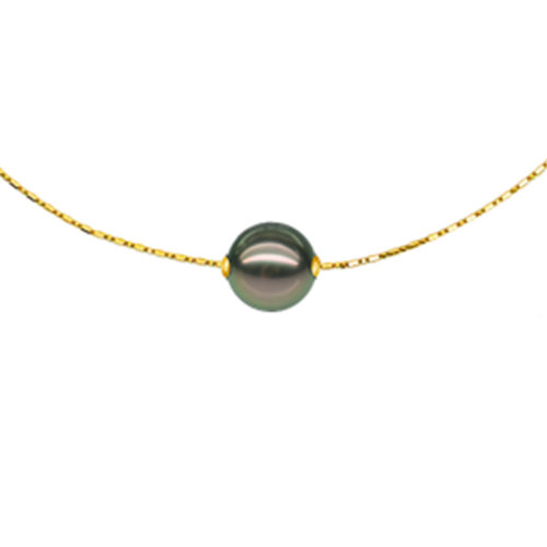 zhuella/珠艾乐 天然大溪地黑珍珠意大利进口18K金项圈项链吊坠 可调节