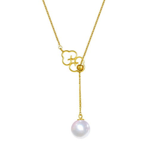 zhuella/珠艾乐 18k黄金日本akoya海水珠平安锁造型项链