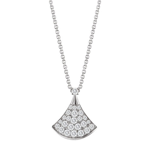 BVLGARI/宝格丽 经典DIVAS’ DREAM系列 18K金白金镶嵌钻石扇形吊坠项链351099