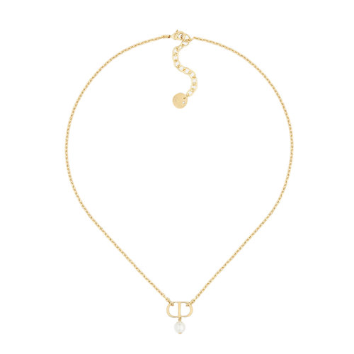 DIOR/迪奥 PETIT CD系列 女士镀金金属镂空“CD”白色树脂珍珠吊坠细项链N1390PTCRS_D301