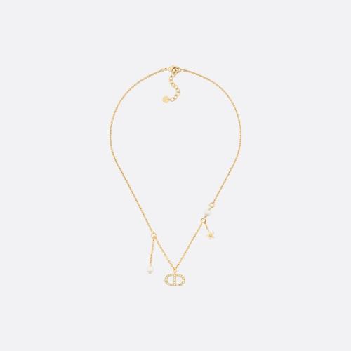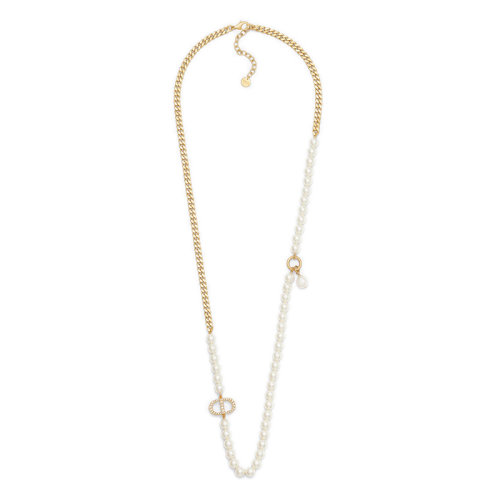 DIOR/迪奥 22新款 女士金色金属白色树脂串珠镶嵌水晶字母链条式项链N2044WOMCY_D03S