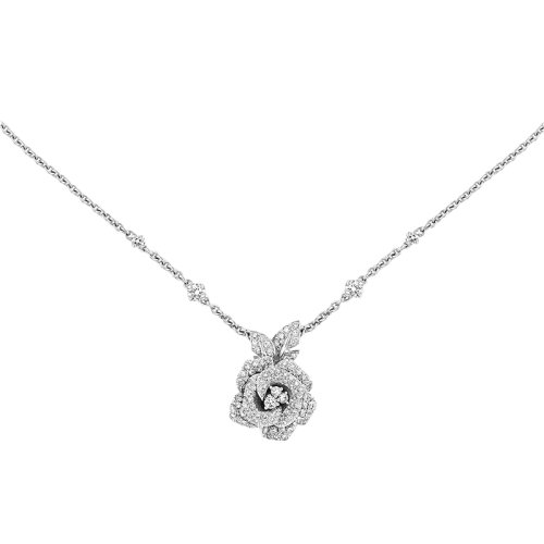 DIOR/迪奥 经典ROSE BAGATELLE MM系列 18K金白金镶嵌钻石玫瑰花吊坠项链JBAG94026_0000