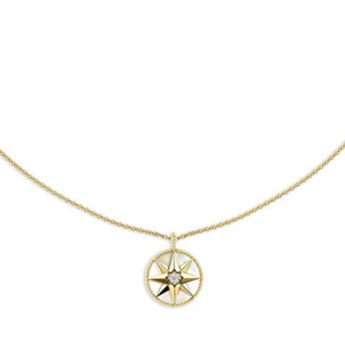 DIOR/迪奥 明星同款ROSE DES VENTS 八芒星镶嵌钻石珍珠母贝饰牌黄金项链