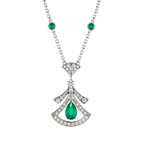BVLGARI/宝格丽 DIVAS'DREAM系列 18K金白金镂空扇子镶有梨形切割祖母绿和钻石 项链 356955