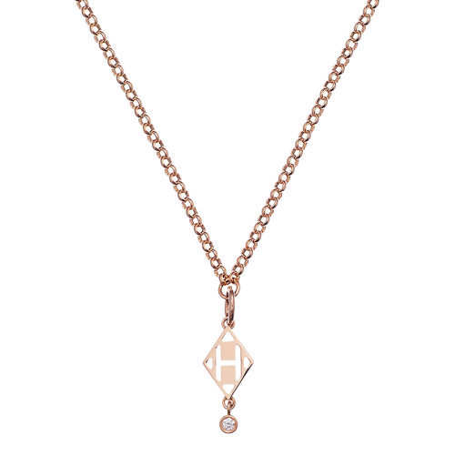 HERMES/爱马仕 经典Gambade系列 18K金玫瑰金镶钻菱形镂空H吊坠项链H216331B