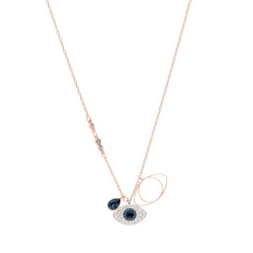 Swarovski/施华洛世奇 女士玫瑰金色仿水晶DUO EVIL EYE恶魔之眼项链锁骨链 5172560