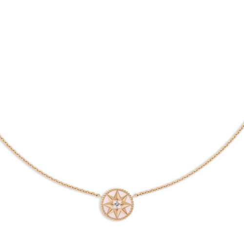 DIOR/迪奥 明星同款ROSE DES VENTS 八芒星镶嵌钻石粉红色蛋白石玫瑰金项链 JRDV95007_0000