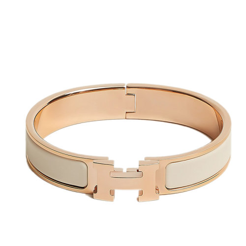 HERMES/爱马仕 经典款Clic H系列 奶油色珐琅镀玫瑰金饰面H标识手镯 H700001FO85