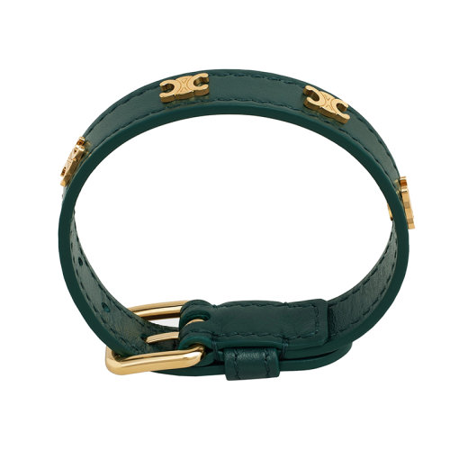 CELINE/赛琳 22新款 TRIOMPHE系列 男女同款金色绿色皮革金扣手链46X623WBC.31AG