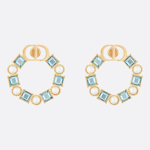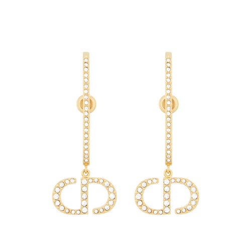 DIOR/迪奥 22新款30 MONTAIGNE系列 女士金色J字形金属镶嵌透明晶体饰CD徽标字母吊饰耳环耳钉E2028WOMCY_D301