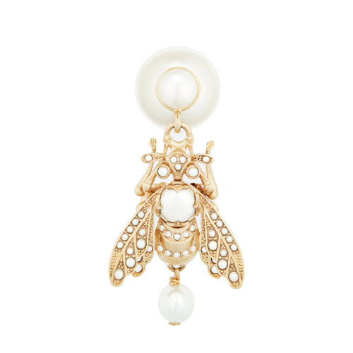 DIOR/迪奥 22新款DIOR TRIBALES系列 女士白色树脂珍珠饰金色镶嵌珠饰小蜜蜂吊饰耳钉耳环E2029WOMRS_D301