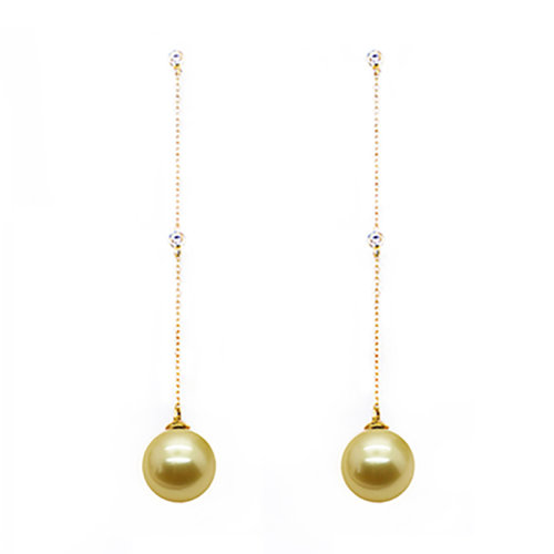 zhuella/珠艾乐 澳大利亚南洋金珠钻石长耳环经典奢华拉长脸型